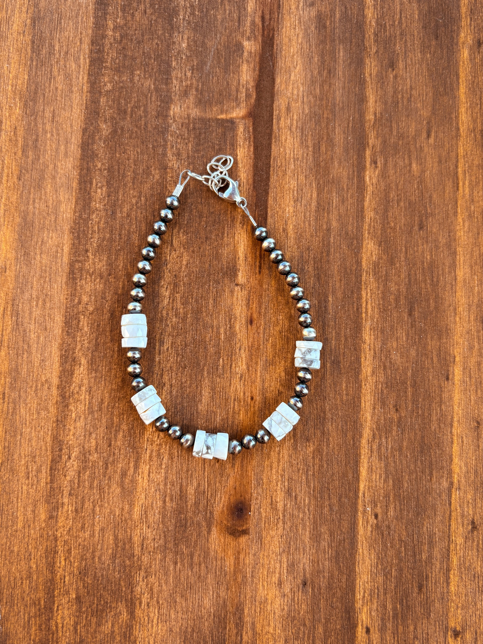 Features 4mm pearls and white turquoise
