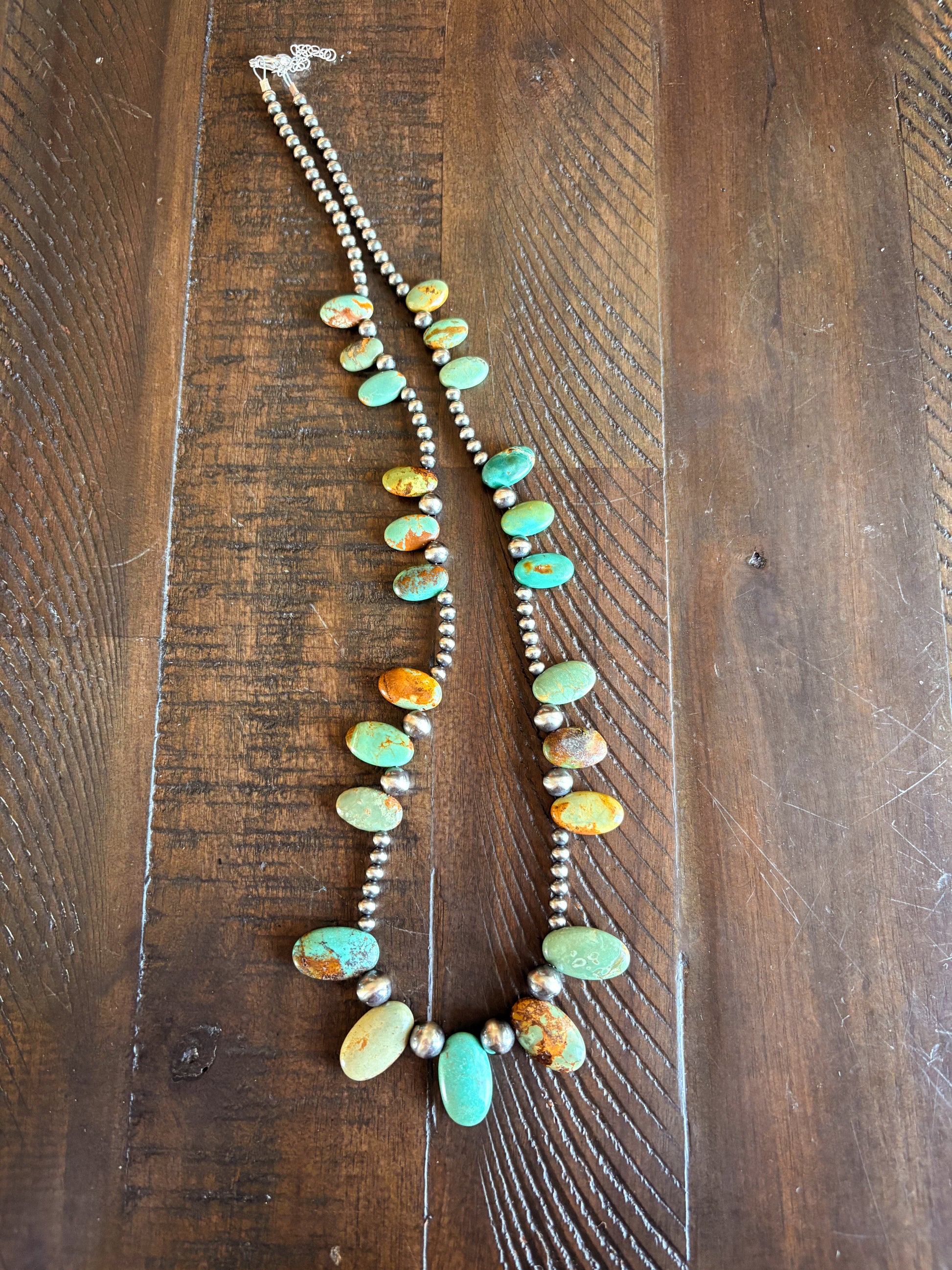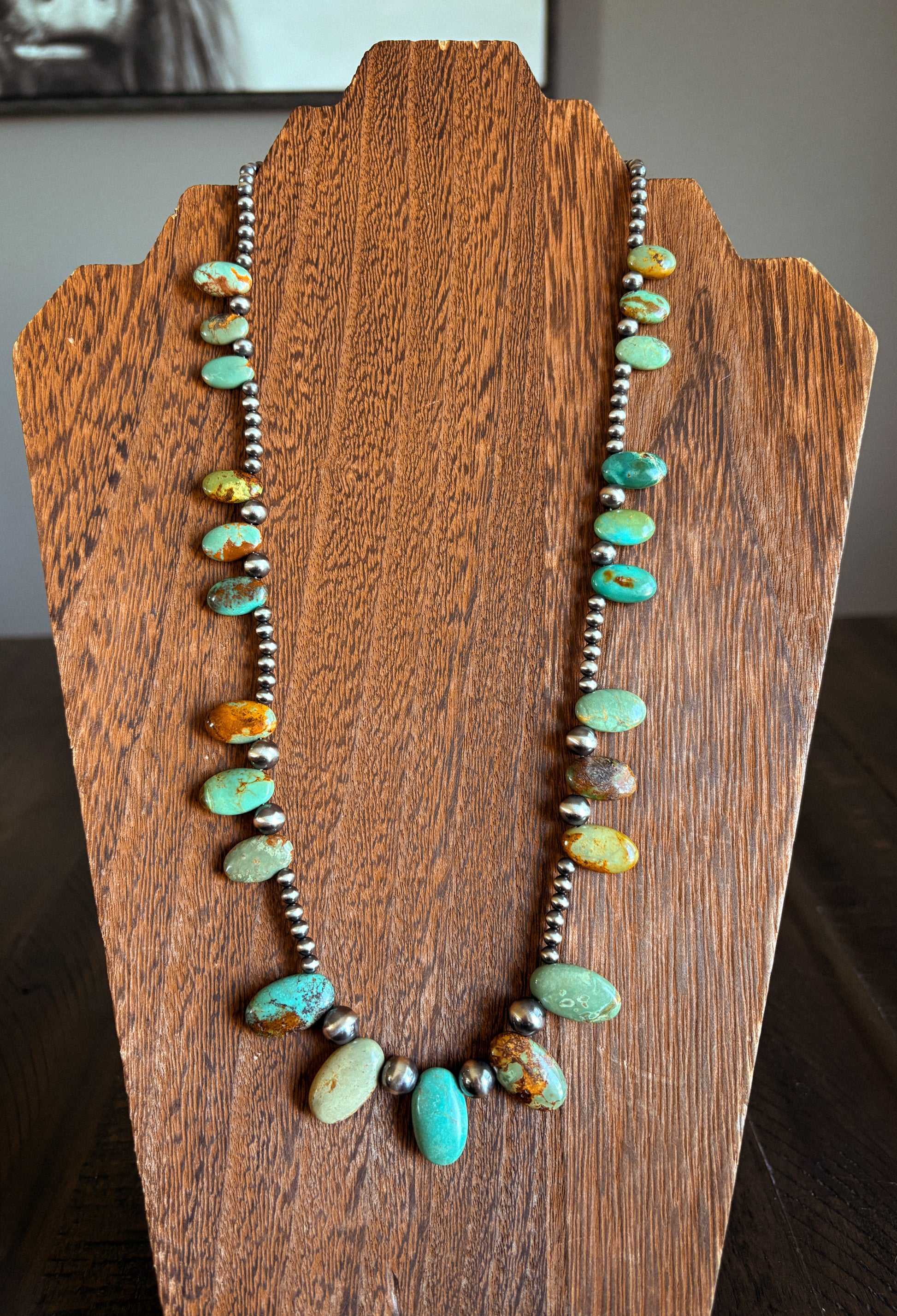 Features 4/5/6/7/8mm pearls and graduated turquoise teardrop beads