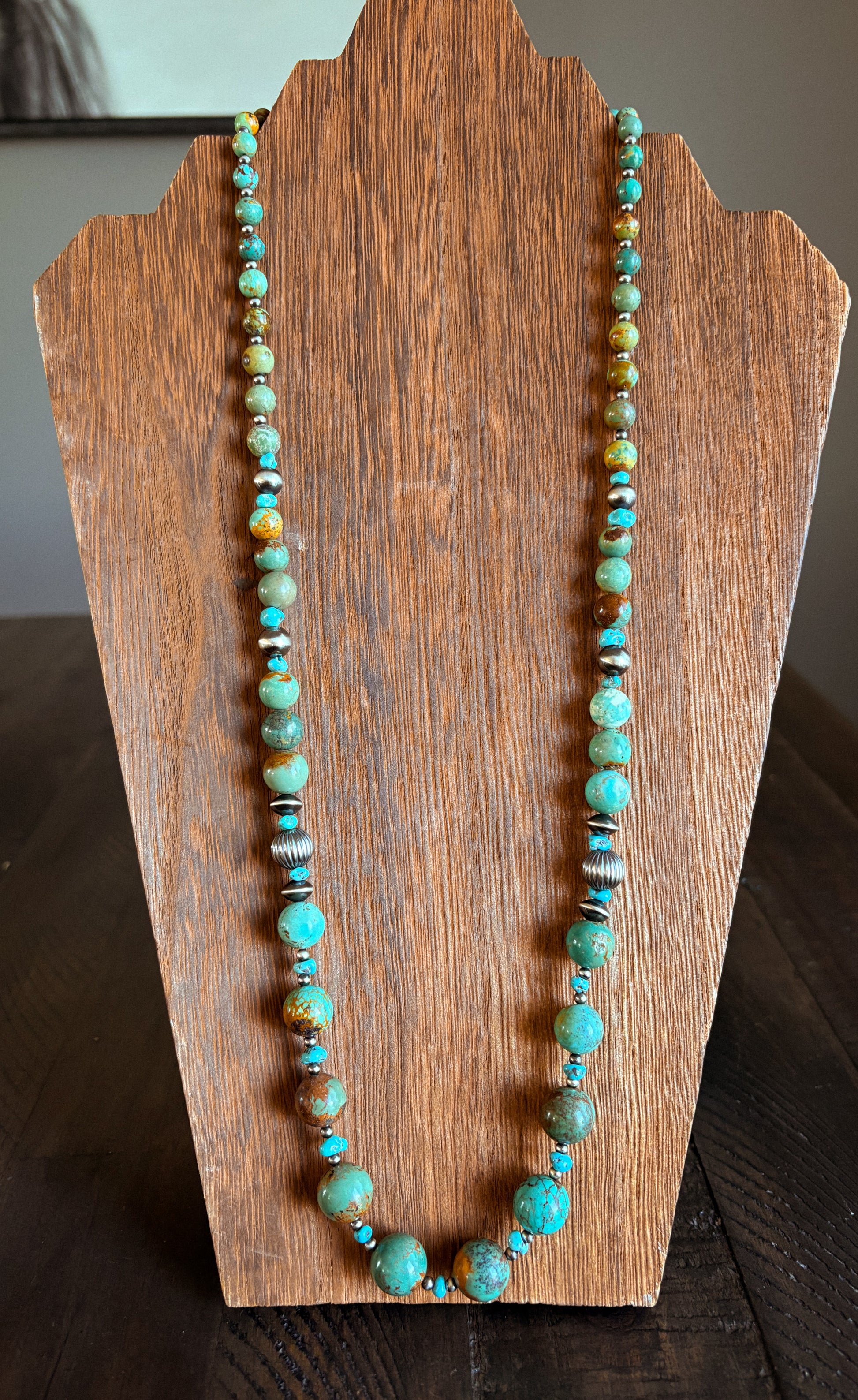 Features 3/4/7/8mm pearls, 10mm corrugated pearls, saucers, turquoise, and graduated round turquoise