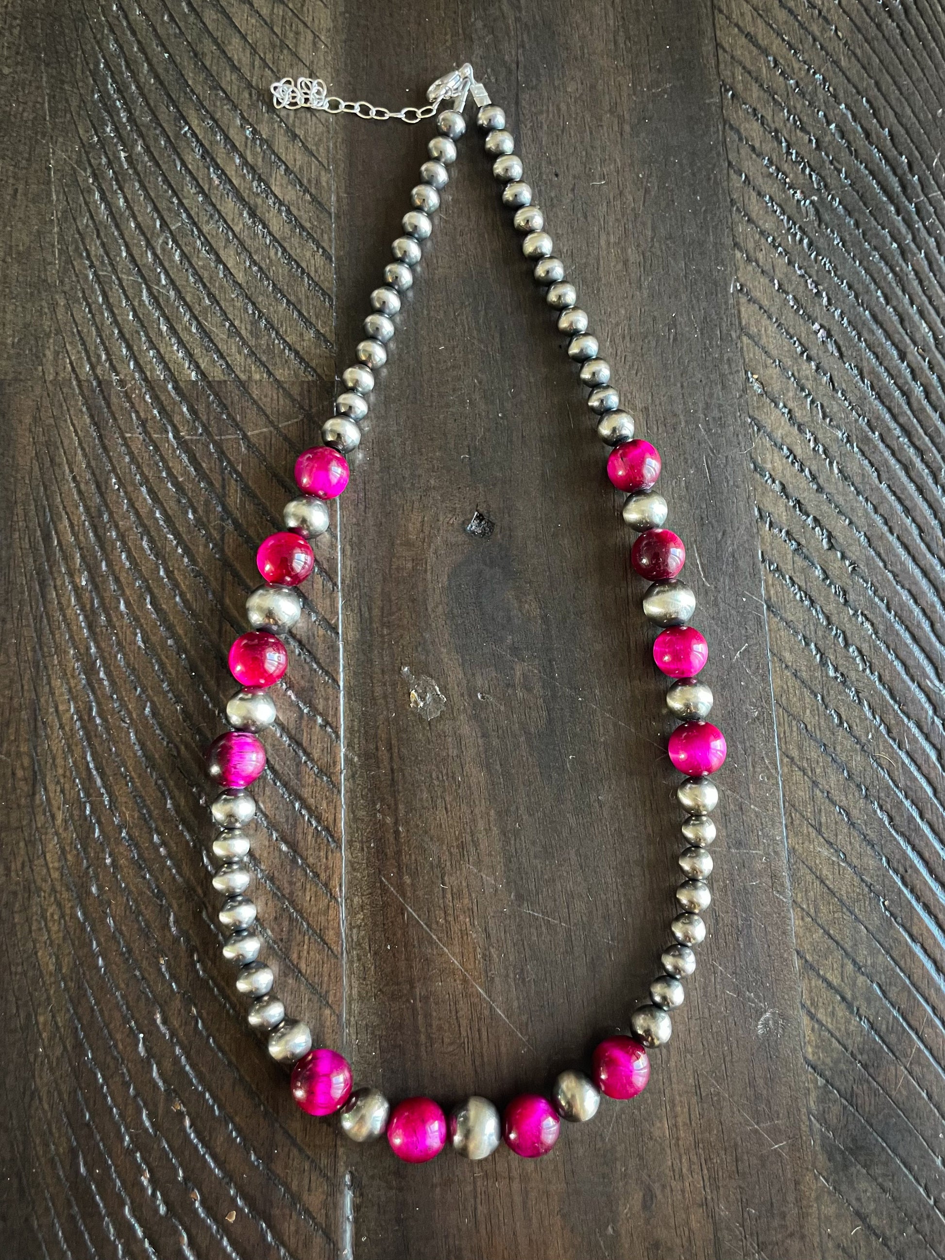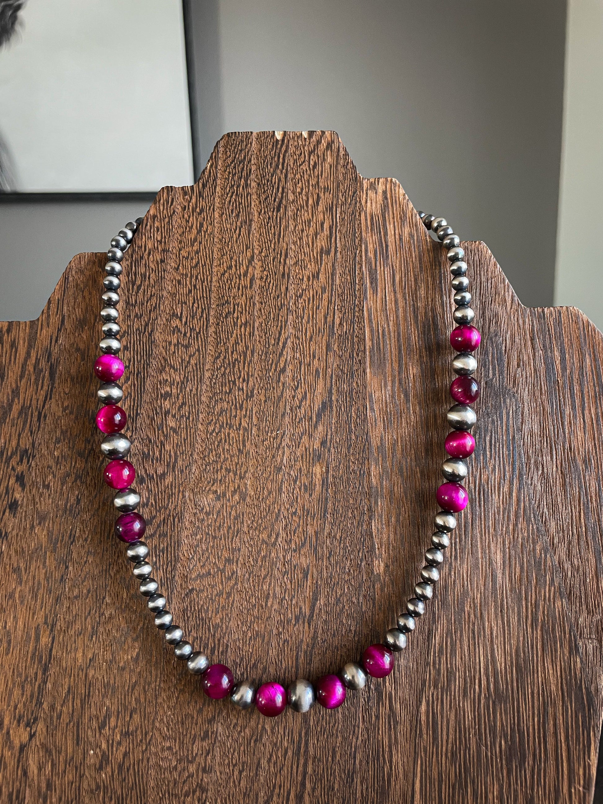 Features 5/6/7/8mm pearls and pink tigers eye beads