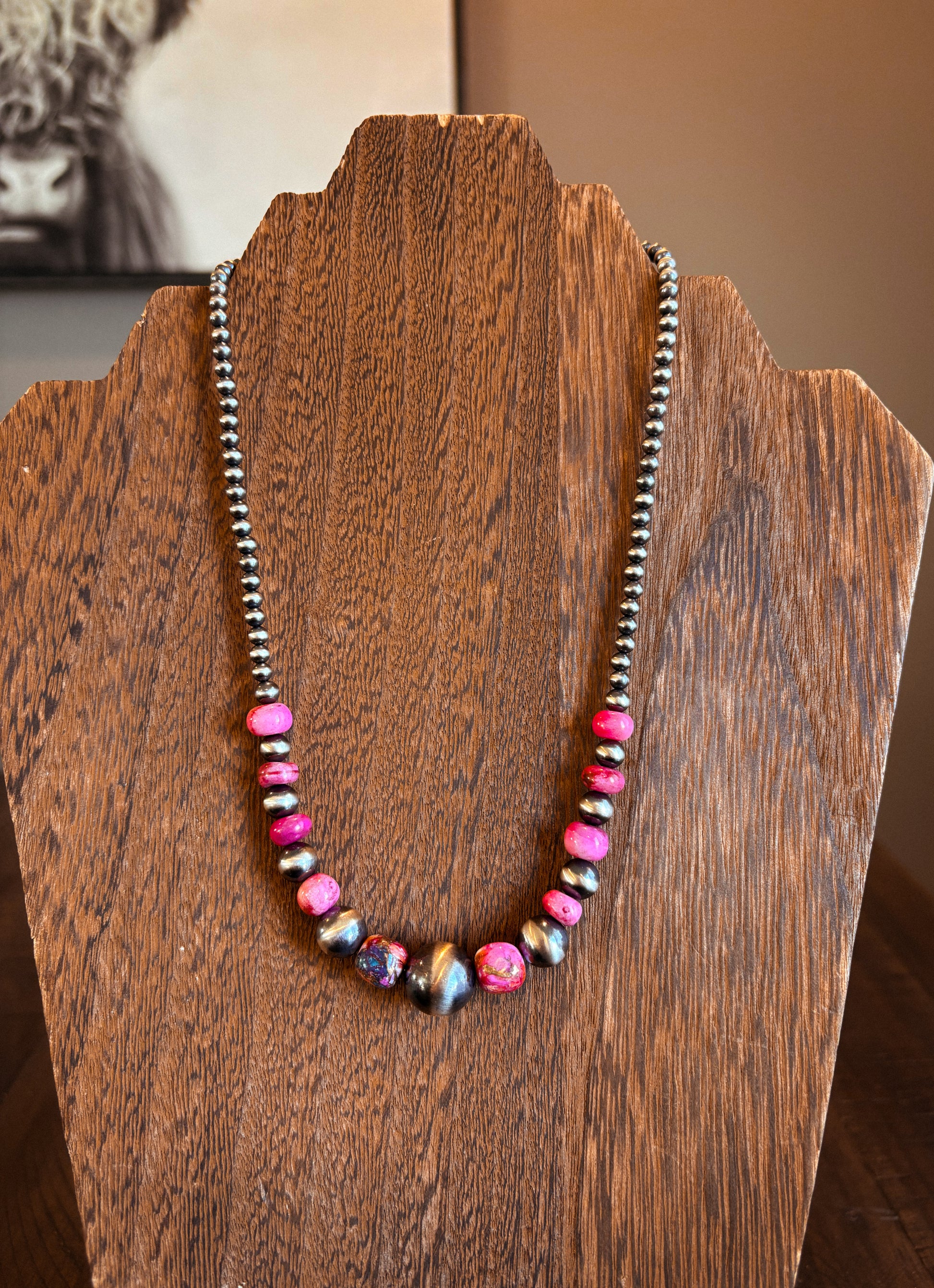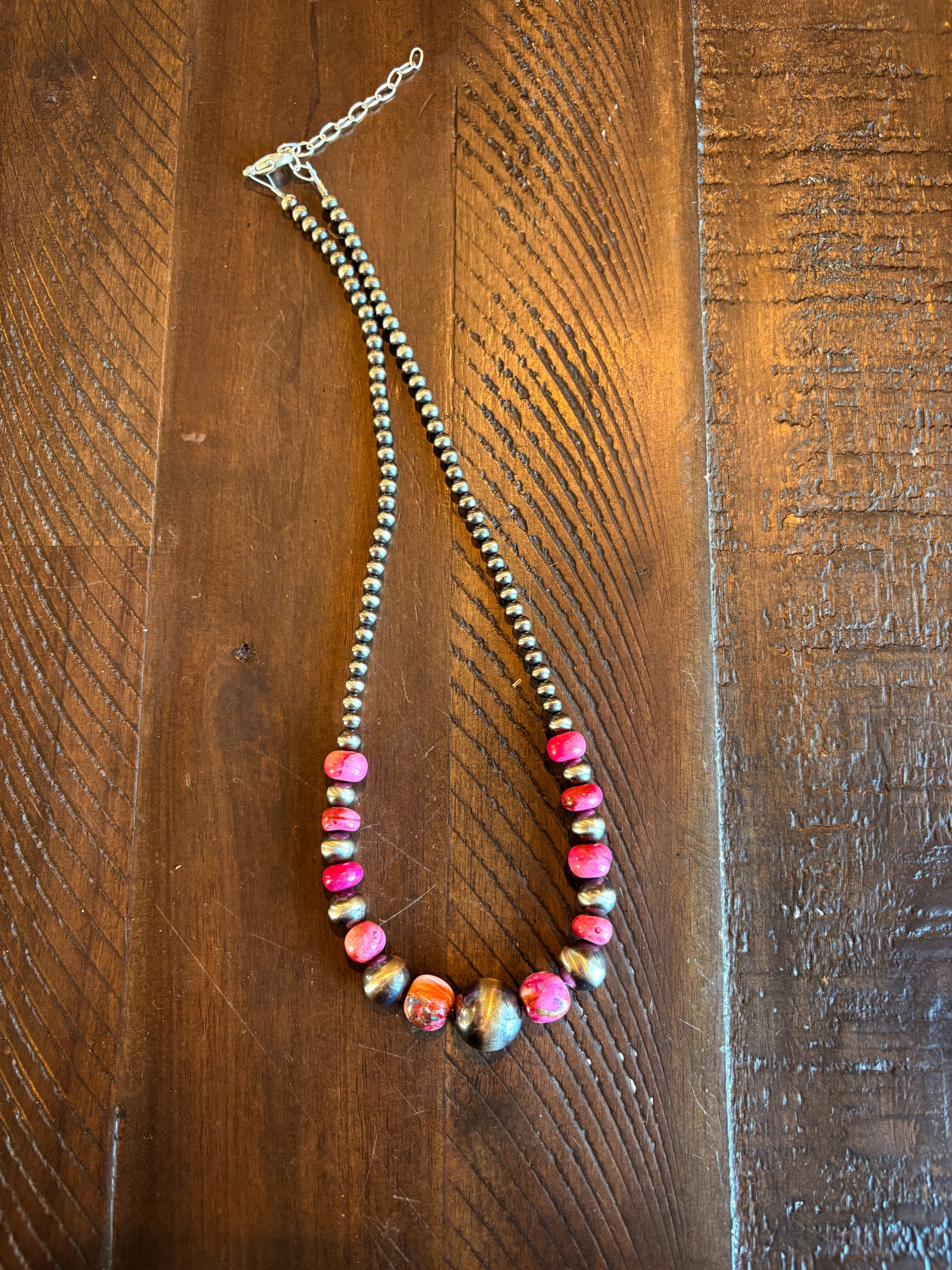 Features 4/5/6/7/8/10/14mm pearls, pink opal, and 12mm pink dahlia