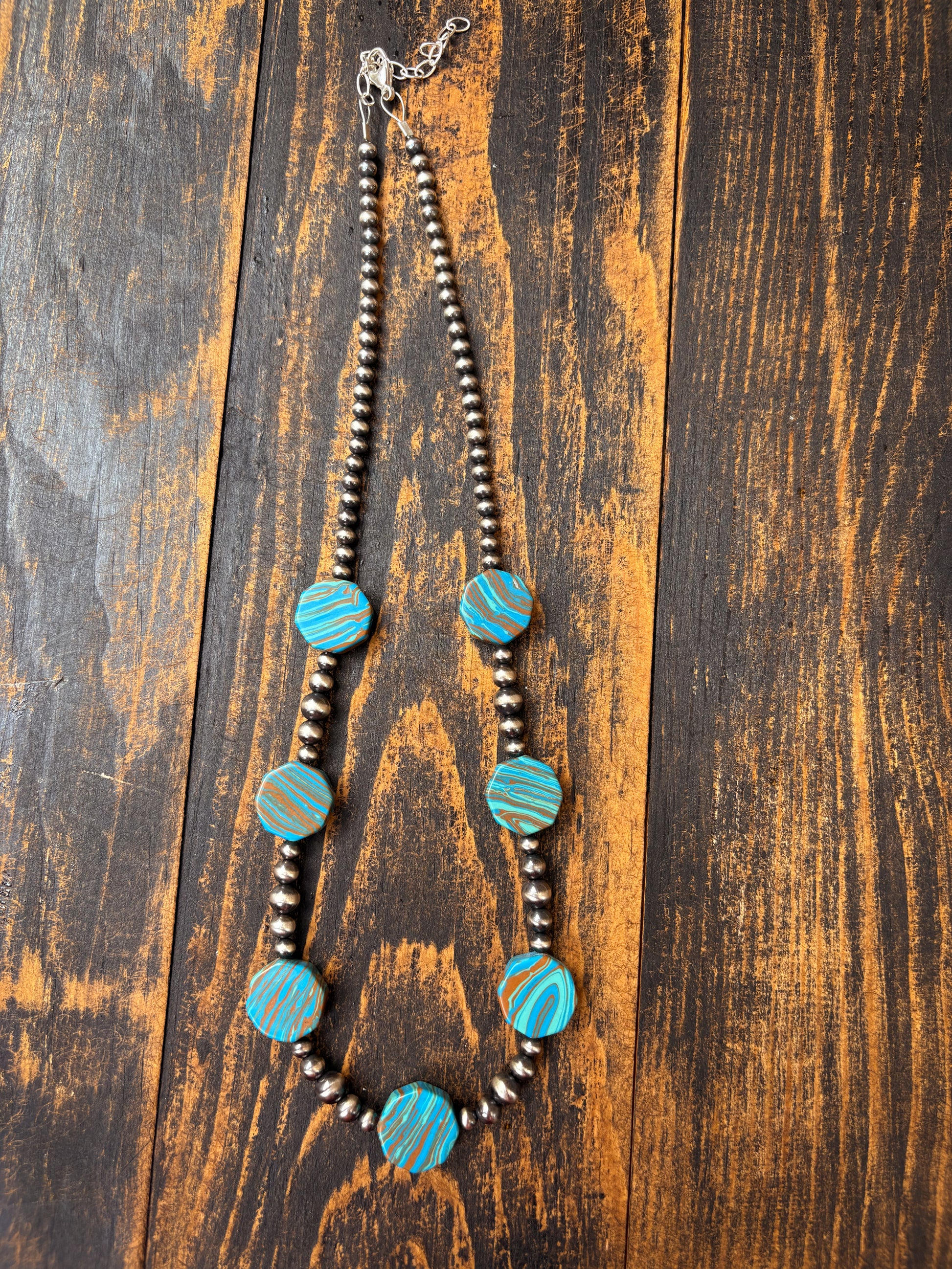 Features 4/6mm pearls and dyed malachite