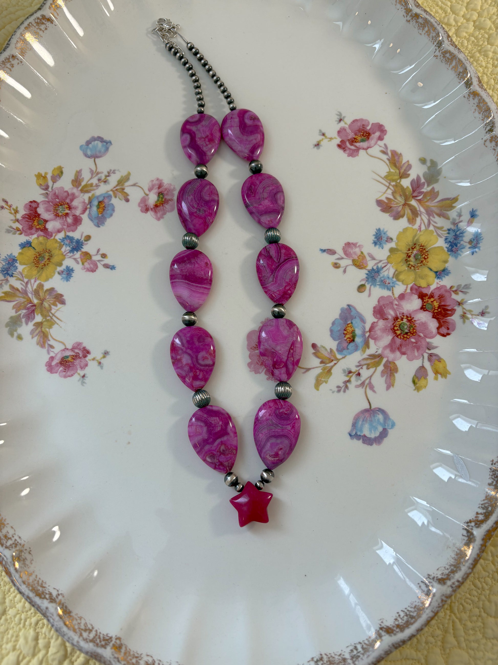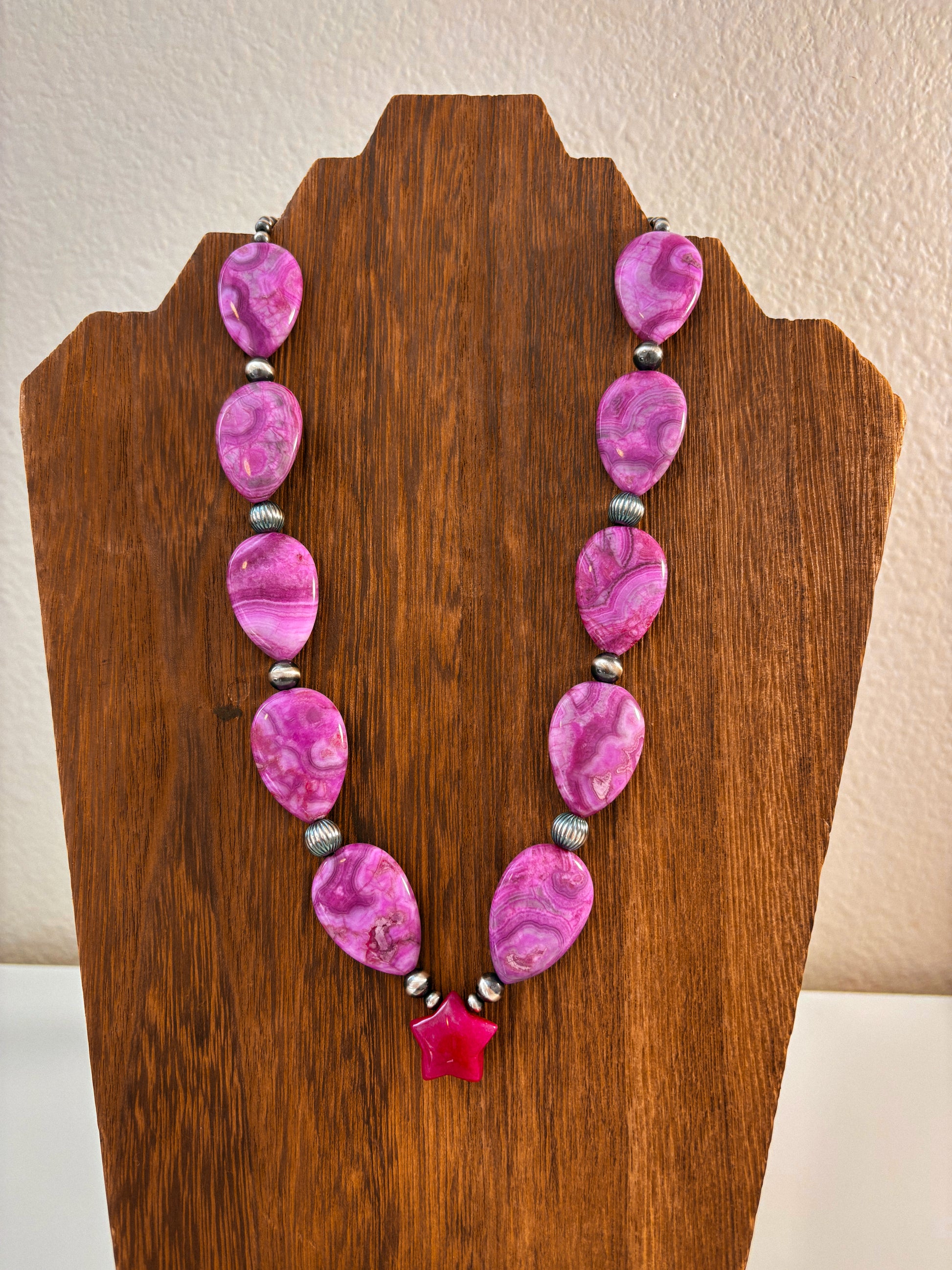 Features 4/6mm pearls, 8mm corrugated pearls, and pink jade