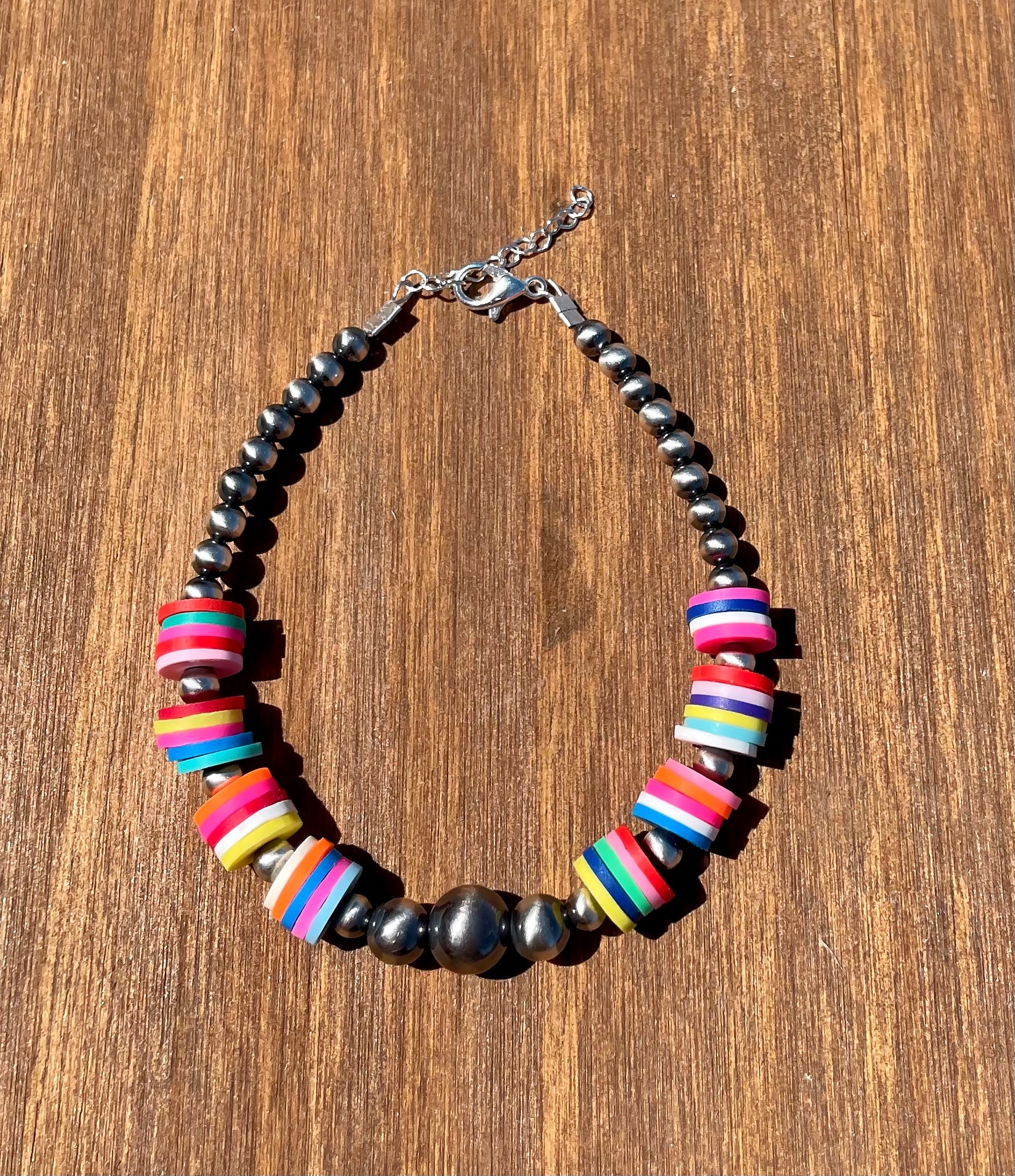 - Features 4/5/6/8mm Navajo pearls and colorful clay beads.